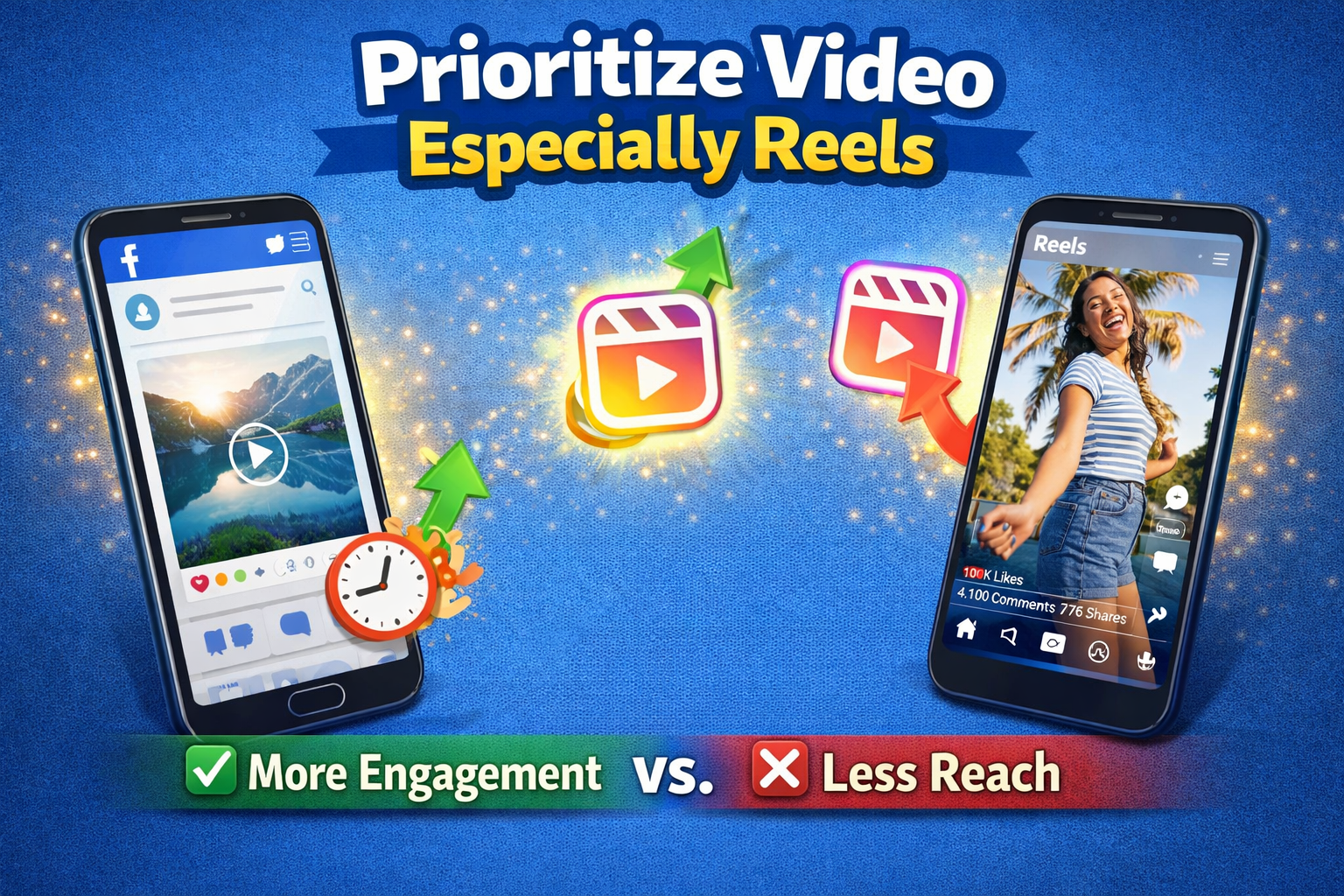 Prioritizing video, especially Reels, is essential for increasing engagement on Facebook because the algorithm favors video content, leading to higher visibility. Reels are short, dynamic, and highly engaging, capturing viewers' attention more effectively than static posts. For example, showcasing product features or behind-the-scenes content in Reels encourages interaction and sharing. Videos tend to retain viewers' attention longer, increasing the chances of more likes, comments, and shares. Reels help boost engagement and extend reach, attracting a broader audience.