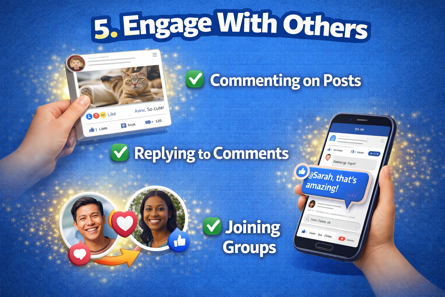 You can encourage more likes, comments, and shares by following the five steps below.