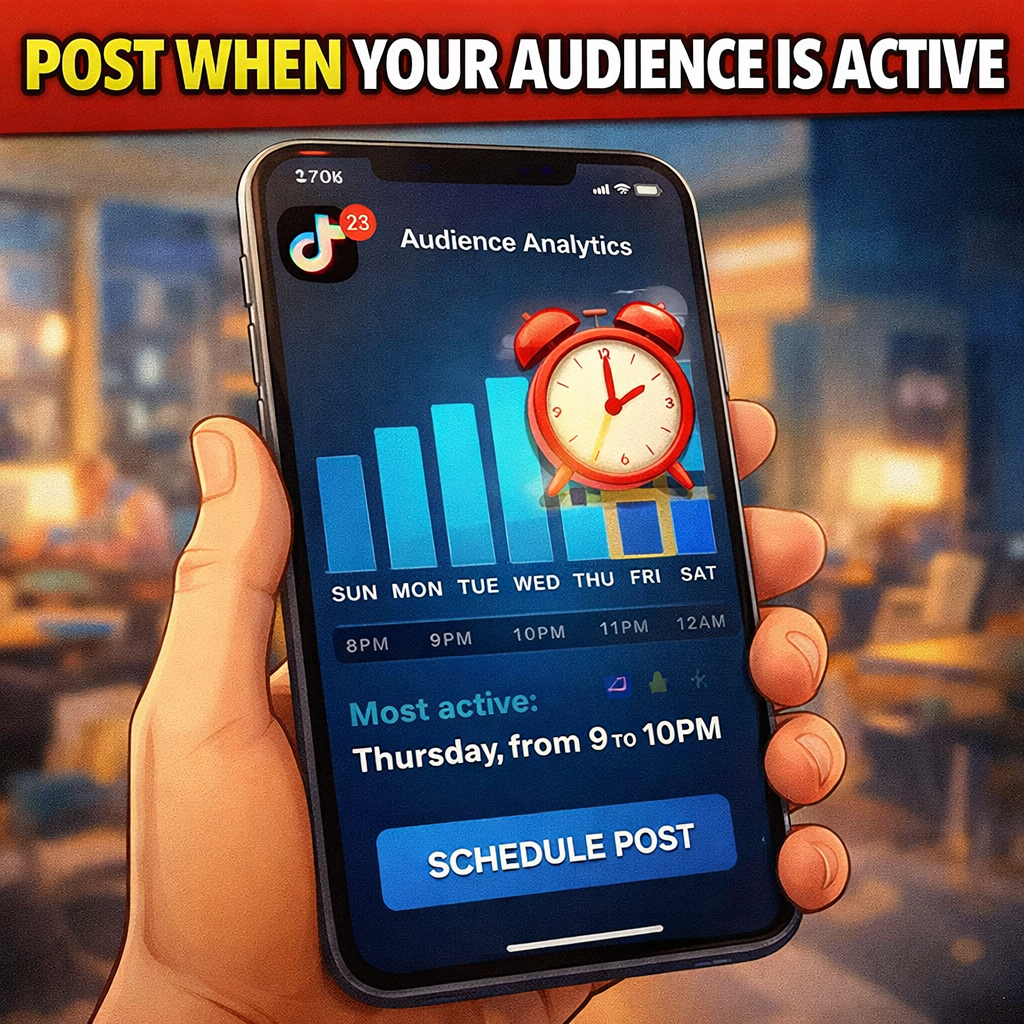 9. Post when your audience is active: TikTok analytics shows the exact hours when followers are mainly active on the platform. Posting 30 minutes before peak activity windows maximizes early engagement velocity.