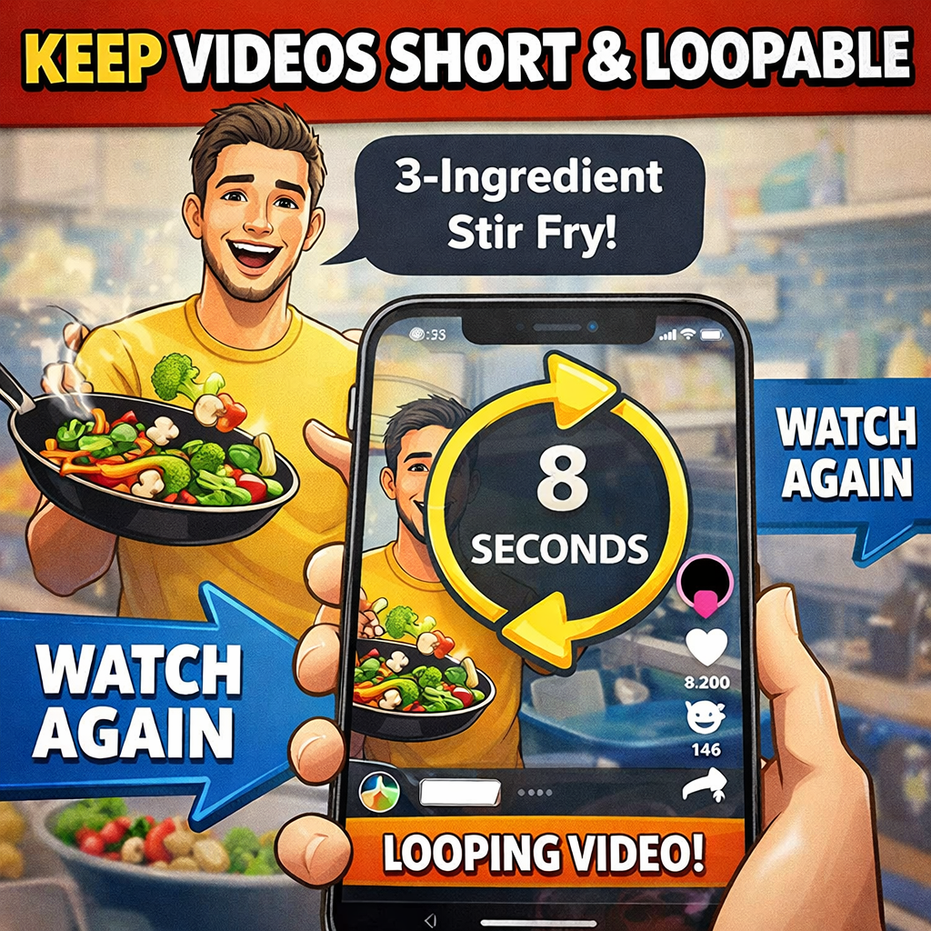 2. Keep Videos Short & Loopable: Videos that run 7 to 15 seconds and end at the starting frame push completion rates higher. The algorithm reads seamless loops as strong quality signals and distributes the content further.